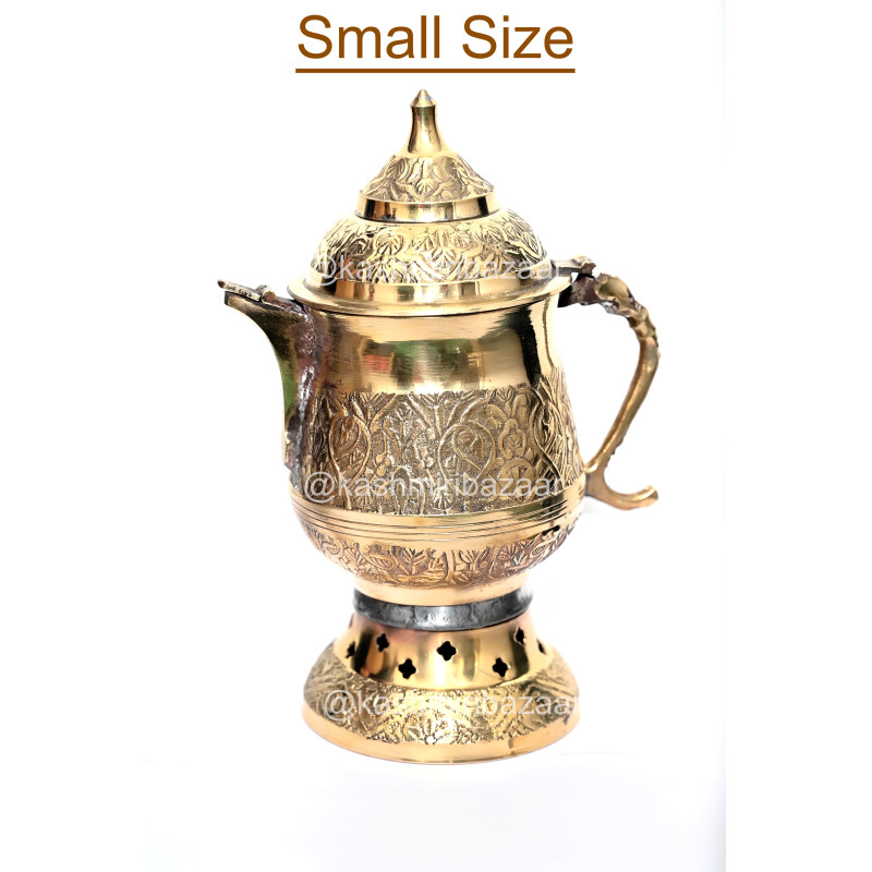 Kashmiri Samawar is a Kettal which is commonly used in every household of Kashmir, Its Made of Copper Brass, Kashmiri Samovar is used to make Kashmiri Kahwa Tea, and Kashmiri Noon Chai (Sheer Chai) Tea. On the marriage function tea is being served in Samovar.