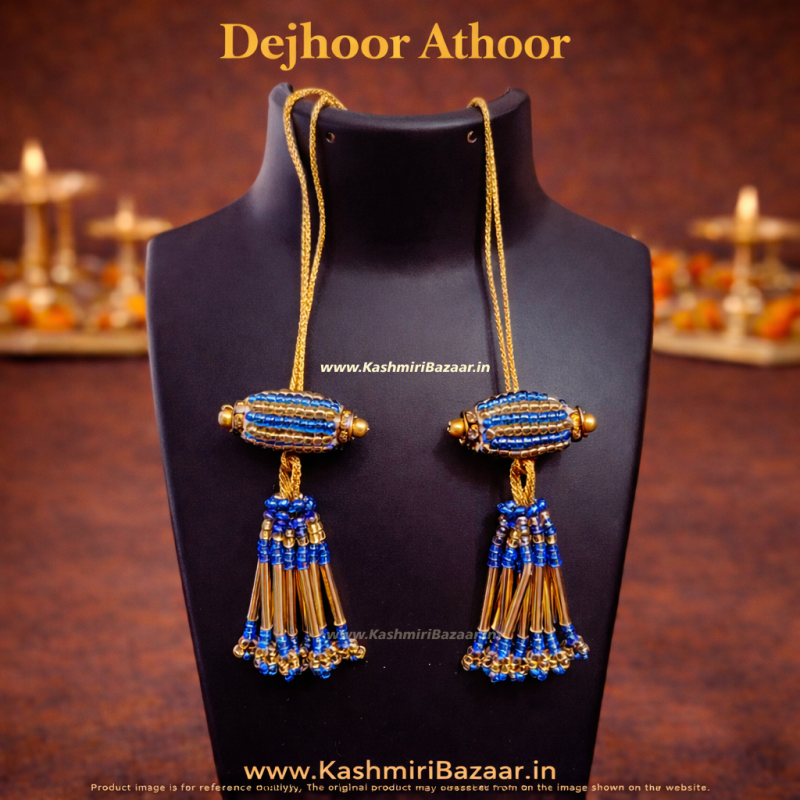 The Dejhoor Athoor is more than just jewelry; it's a reflection of the rich heritage and deep-rooted traditions of Kashmir. These long earrings are a testament to the timeless elegance of Kashmiri adornment, and they continue to be a vital part of the region's cultural identity. As they grace the ears of brides during weddings, the Dejhoor Athoor carries with it the weight of tradition and the promise of a new beginning.