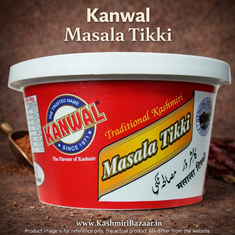 Kanwal Masala tikki is traditional spice of Kashmir. King Of All Spices Kashmiri Masala Tikki Is Know As "Ver" In Kashmir. Kashmiri Bazaar Brings You Best Quality Kanwal Masala Tikki (VER) Directly From Kashmir, Kanwal Masala Tikki is a spice blend made by Kanwal Foods. It is a mixture of various spices that are commonly used in Indian cuisine. The spice blend is made by roasting and grinding various spices and herbs, such as cumin, coriander, red chili powder, black pepper, cinnamon, and cardamom. The blend is used to add flavor and aroma to dishes such as curries, vegetables, meat, and lentils.