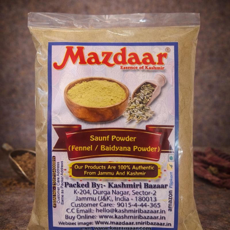 Saunf Powder also know as Baidyana in Kashmir, It's one of the most important ingredient in Kashmiri Cuisine. Kashmiri Bazaar brings fresh and best quality Mazdaar Premium Quality (Baidyana) fennel Powder.